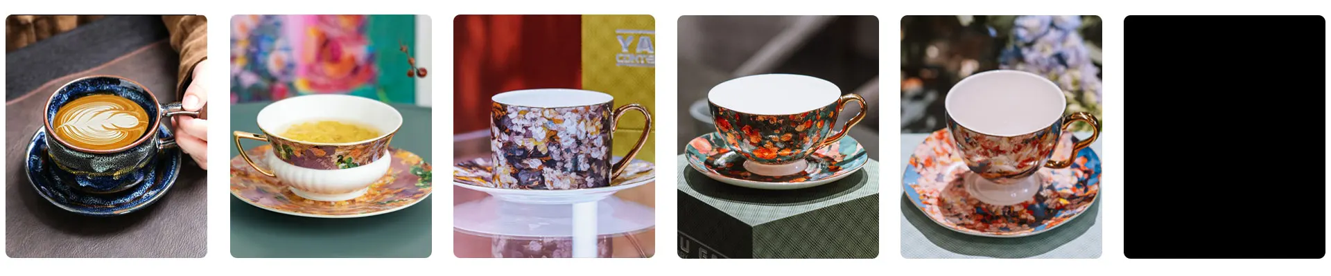अनुकूलित सोने की हड्डी चीन सिरेमिक कॉफी कप सेट तेल पेंटिंग चाय कप और उपहार देने के लिए सॉकर्स-युनशुई
